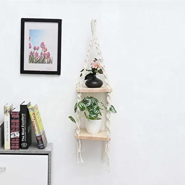 The Boho wood rope wall decor hanging shelf is not only looks great on the wall, ceiling, window, but also big and strong enough to display your favorite small planters, family picture frames. Succulents, books, and candles. The Storage floating shelf provides a perfect way to create a natural, modern, relaxed, stylish charm trendy home decor atmosphere, it makes your room feel so cozy and elegant. This handmade wooden wall Organizer Hanger is the perfect storage and decorate shelf for many free spaces, such as bedroom, living room, kitchen, dining room, bathroom, dorm room, Indoor gardens, sunroom, offices, it can be installed in front of the windows, porchs, gardens, terraces, wall spaces and ceilings. Makes it as a unique and eco-friendly gift for yourself or your friends, just need to equip some small green plants on the wooden plank, it will create more greenery look and make your space more close to the nature.