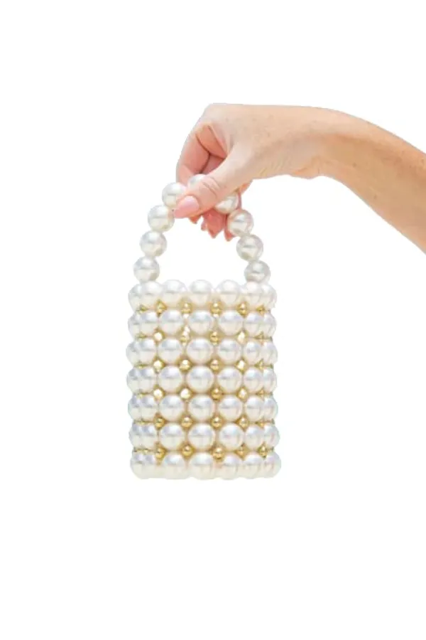 Luxury Cream Pearl Bucket Bag, Pearl Cylinder Bag, Hen Party Bag, Wedding ..More