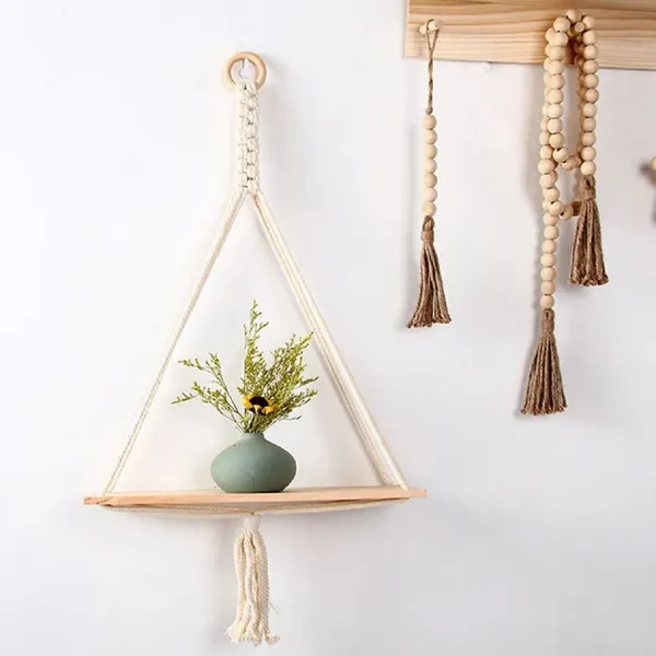 Wall Hanging Shelf Indoor Boho Wall Decor for Bedroom, Wood Hanging Shelf ..More