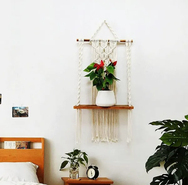 Our handmade wall hanging shelf is made of 4mm cotton cord, Compared with other 3mm Boho Rope , it is stronger, durable, and beautiful.