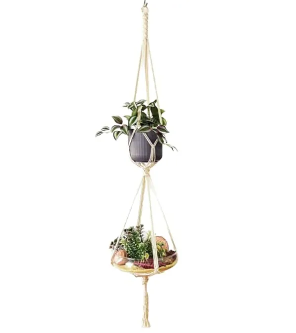PREMSTYLISH AND UNIQUE - The modern, vintage-inspired plant hanger adds the perfect touch to your room and living room. This beauty would be gracing your home or balcony garden, or brightening up an office. Easily add some special to your beautiful bohemian home decor, sweet farmhouse decor, or modern minimalist style.IUM MATERIALS--Our indoor plant hanger is woven from cotton rope, meticulously handcrafted, eco-friendly, no smell, which is strong and durable.