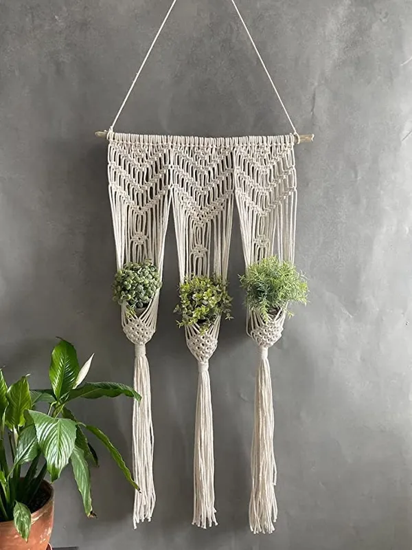 【HANDMADE IN INDIA】Handmade by talented Indian artisans, our plant hangers are made of 100% natural cotton rope, meticulously handcrafted, eco-friendly, no smell, sturdy and not easily deformed or damaged. Great way to show your lovely plants, also a unique boho wall hanging decor