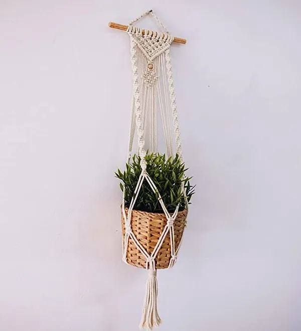 PREMSTYLISH AND UNIQUE - The modern, vintage-inspired plant hanger adds the perfect touch to your room and living room. This beauty would be gracing your home or balcony garden, or brightening up an office. Easily add some special to your beautiful bohemian home decor, sweet farmhouse decor, or modern minimalist style.IUM MATERIALS--Our indoor plant hanger is woven from cotton rope, meticulously handcrafted, eco-friendly, no smell, which is strong and durable.