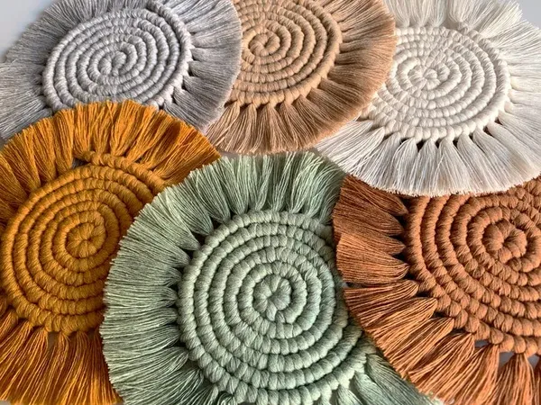 Coasters , Vintage Coaster Set , Drink Coasters Fabric , Cotton Placemat , Floral Coaster , Boho Coasters , Plant Coaster Handmade round coasters. These handmade fringe coasters will add a decorative rustic style to your home. Ideal for if you want a placemat for your steaming cuppa or a landing pad for your favourite pot plant, these coasters are the perfect finishing touch. Makes a great gift for those who love boho home décor or make it a perfect addition to your own home or office space. Upon arrival of your order and after removing your coaster(s) from the packaging we recommend using a clean comb to gently brush through the fringe to spruce up your coaster.