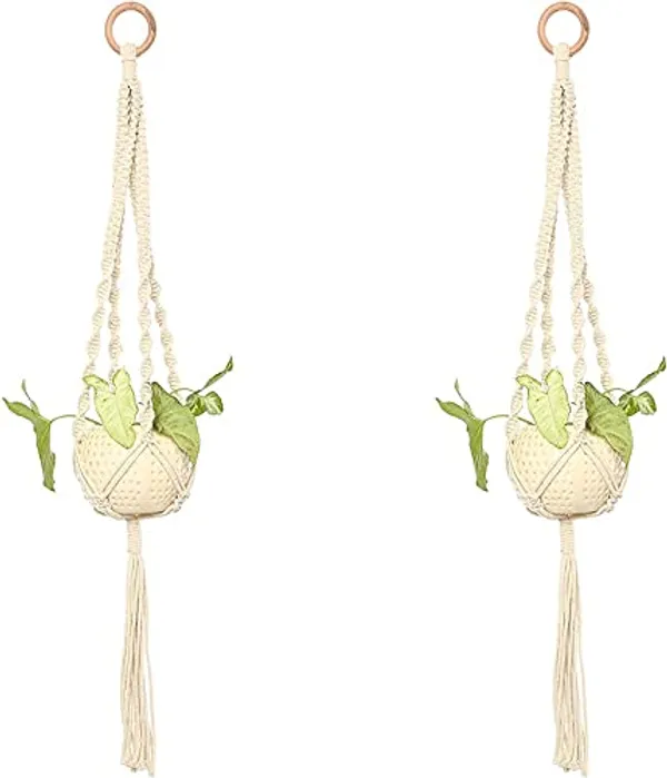 The plant hangers have an inbuilt ring and are great for both indoor and outdooruse. They can be hung from a hook in the ceiling or against a wall like a wall hanging. They can also be used to decorate your window, curtain rod, room corners, patio door or porch