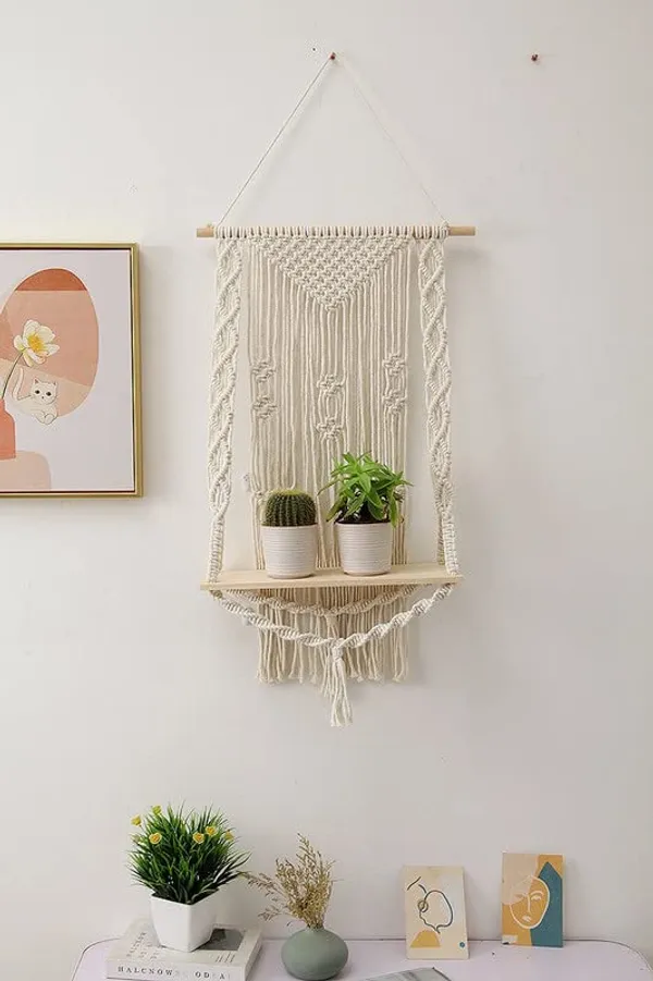 Wall Hanging Shelf Natural Pine Wood for Plants Flower Pots Bohemian Style ..More