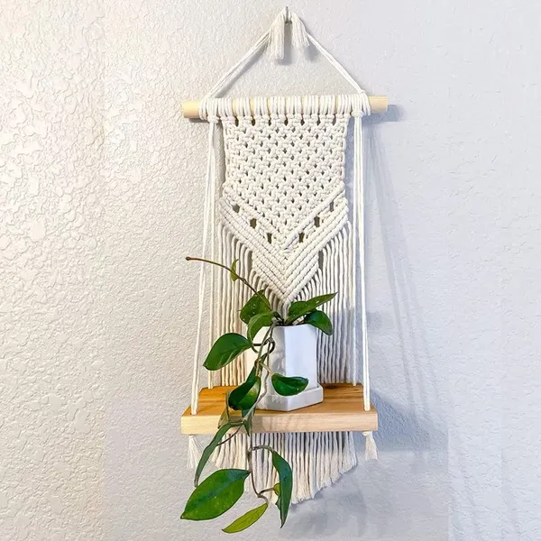 Handmade Wall Hanging Shelves: The Teakwood shelves are linked by cotton ropes woven by local craftsmen carefully, which matches any minimalist home decor. This elegant wall decor Shelf is made of 100% pure cotton cord, without artificial ingredients or chemicals. Sturdy, durable. The wall art decor creates a sense of harmony and comfort for your room.