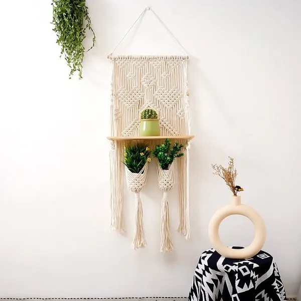 Handmade Wall Hanging Shelves: The Teakwood shelves are linked by cotton ropes woven by local craftsmen carefully, which matches any minimalist home decor. This elegant wall decor Shelf is made of 100% pure cotton cord, without artificial ingredients or chemicals. Sturdy, durable. The wall art decor creates a sense of harmony and comfort for your room.