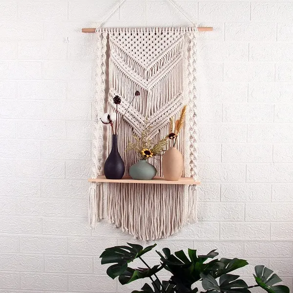 Handmade Wall Hanging Shelves: The Teakwood shelves are linked by cotton ropes woven by local craftsmen carefully, which matches any minimalist home decor. This elegant wall decor Shelf is made of 100% pure cotton cord, without artificial ingredients or chemicals. Sturdy, durable. The wall art decor creates a sense of harmony and comfort for your room.