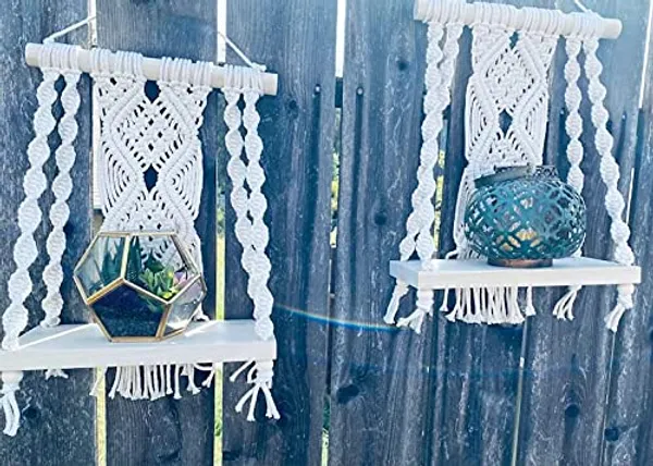 Wall Hanging Shelf; Cotton Rope Bohemian Woven Home Decor Handmade Boho Shelf with 2 Shelves for Plants and Decor; Tapestry Tassel Wall Floating Hanger for Home Decor. Set of 2 |